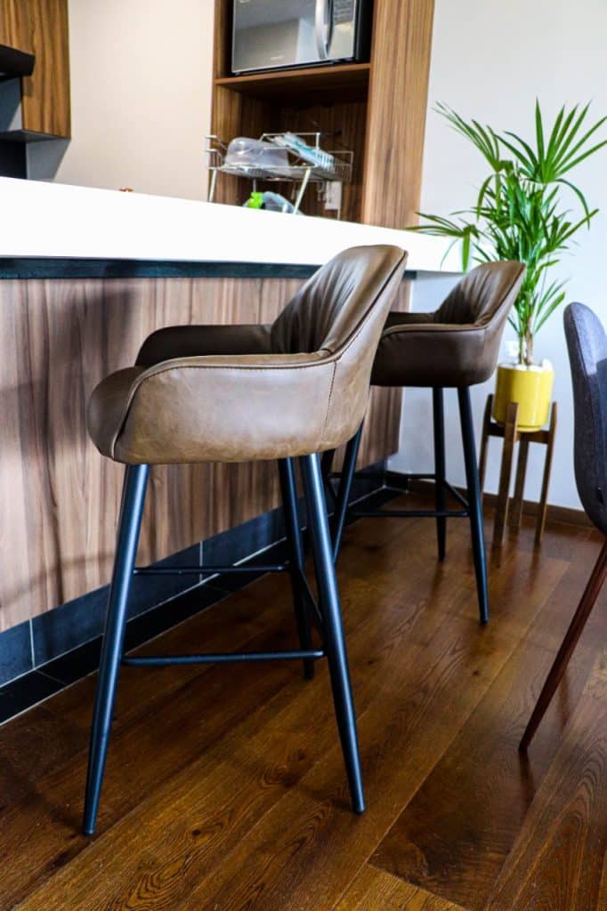 Cada mueble y acabado fue creado pensando en proyectar profesionalismo, orden y sofisticación, manteniendo una línea visual uniforme en todo el espacio.